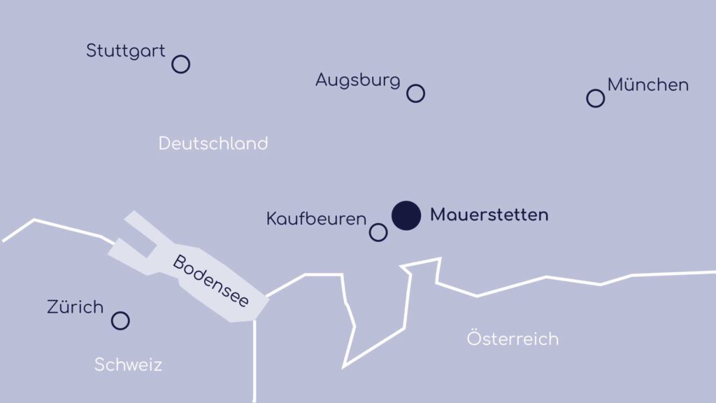 Zwischen den Metropolregionen München und Stuttgart finden Sie uns in Mauerstetten im östlichen Allgäu.